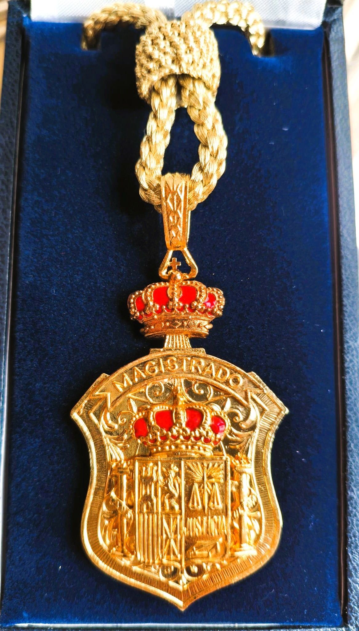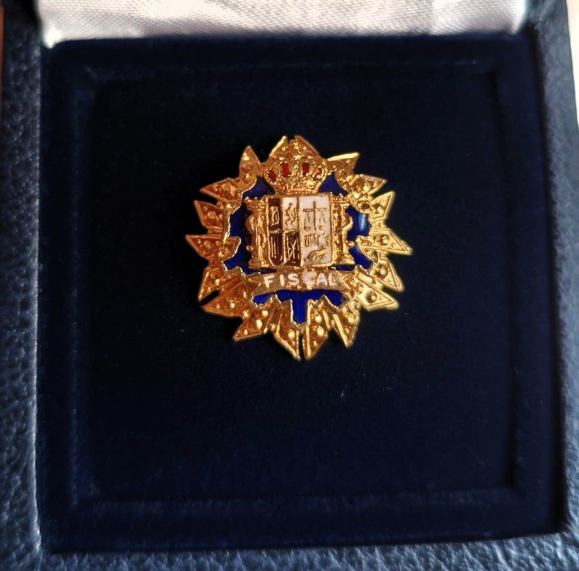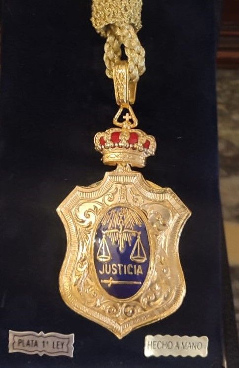 JUDEX que sirve de expositor para cuando no se esté usando en la toga. La placa incorpora la leyenda: "MAGISTRADO", "MAGISTRADA" o "MINISTERIO FISCAL". También disponible miniatura de solapa.